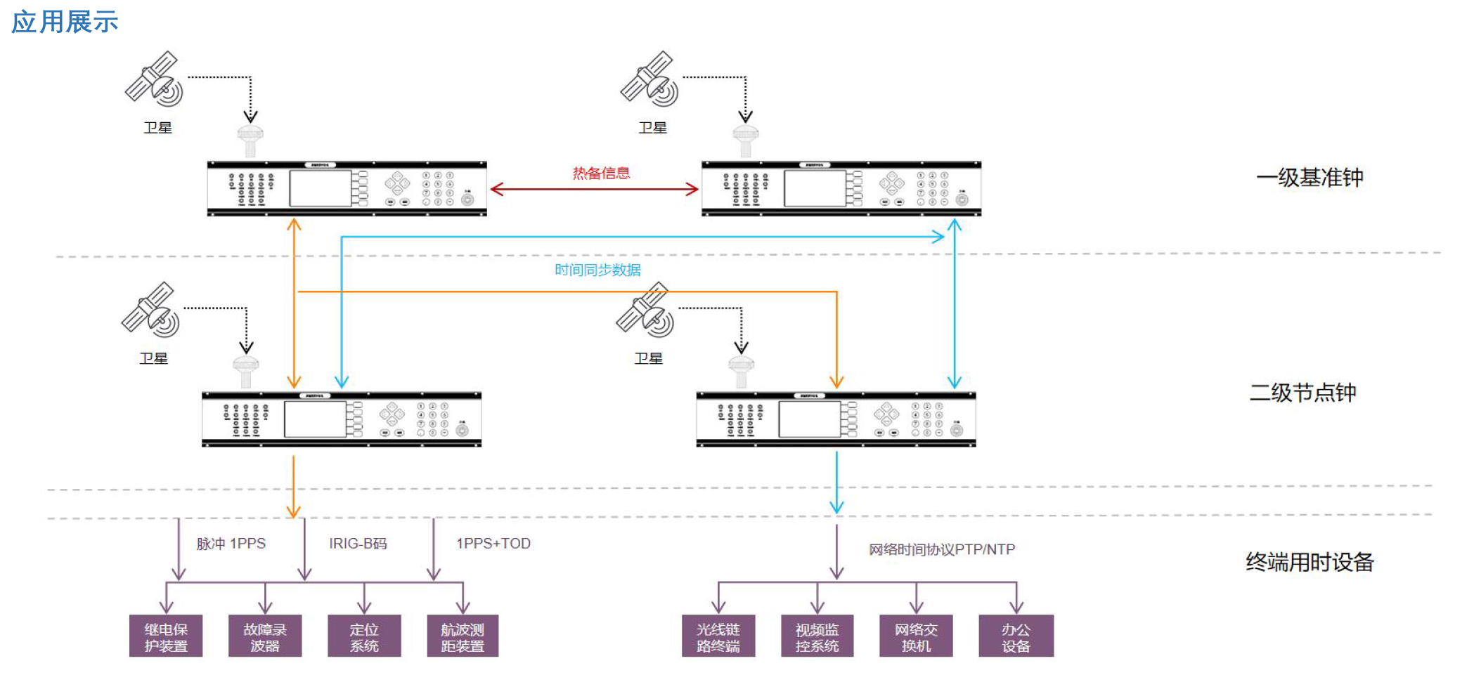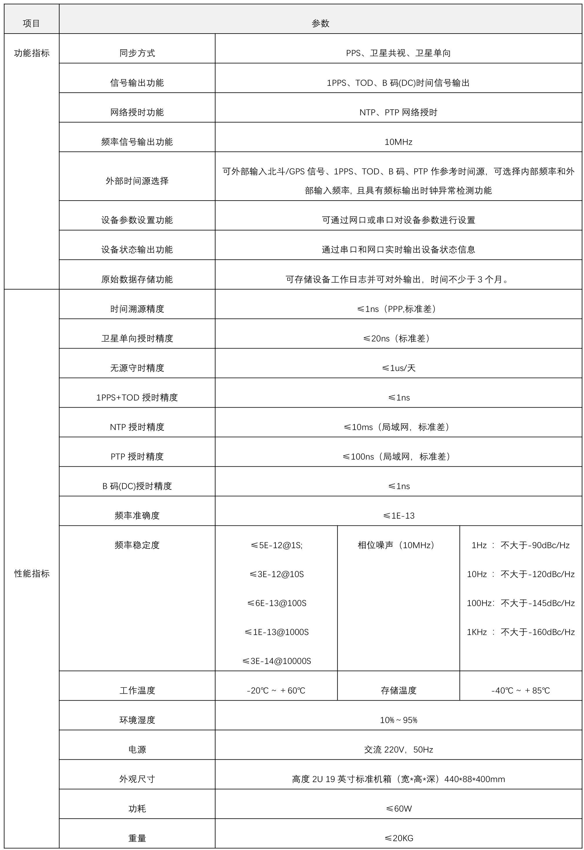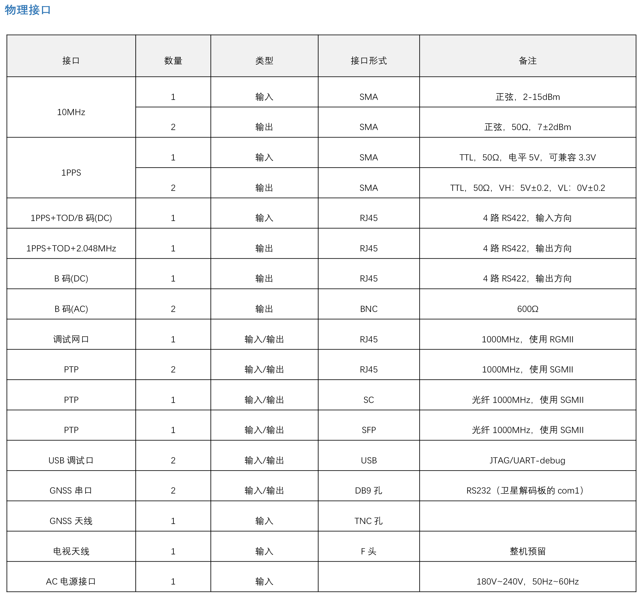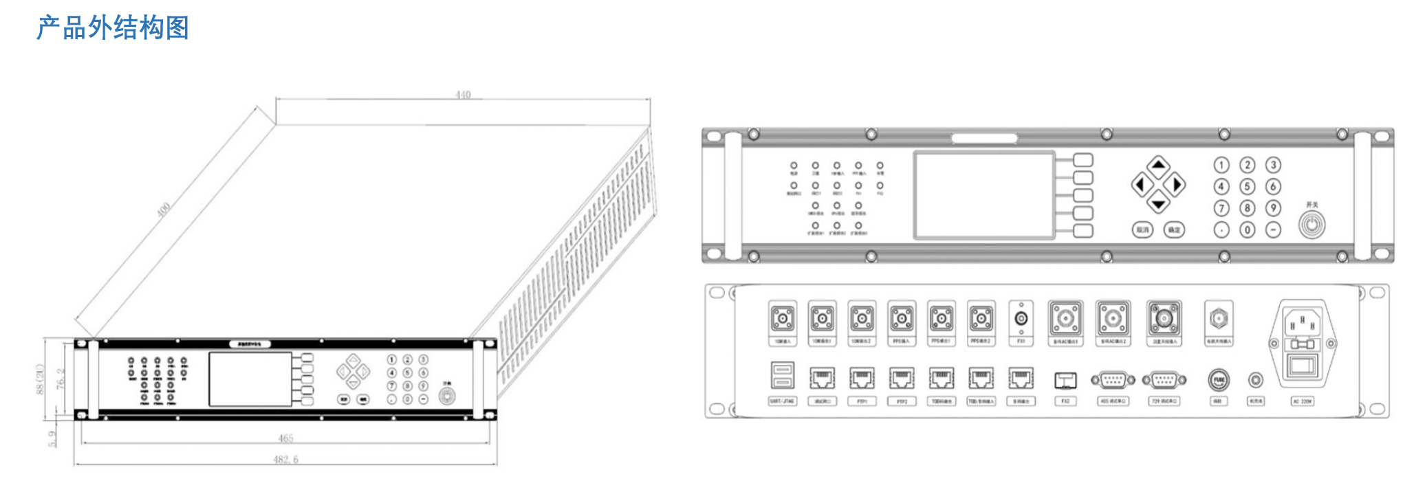 具有1PPS+TOD、B码(DC)授时功能;NTP、PTP等网络授时功能;输出10MHz频率信号功能;